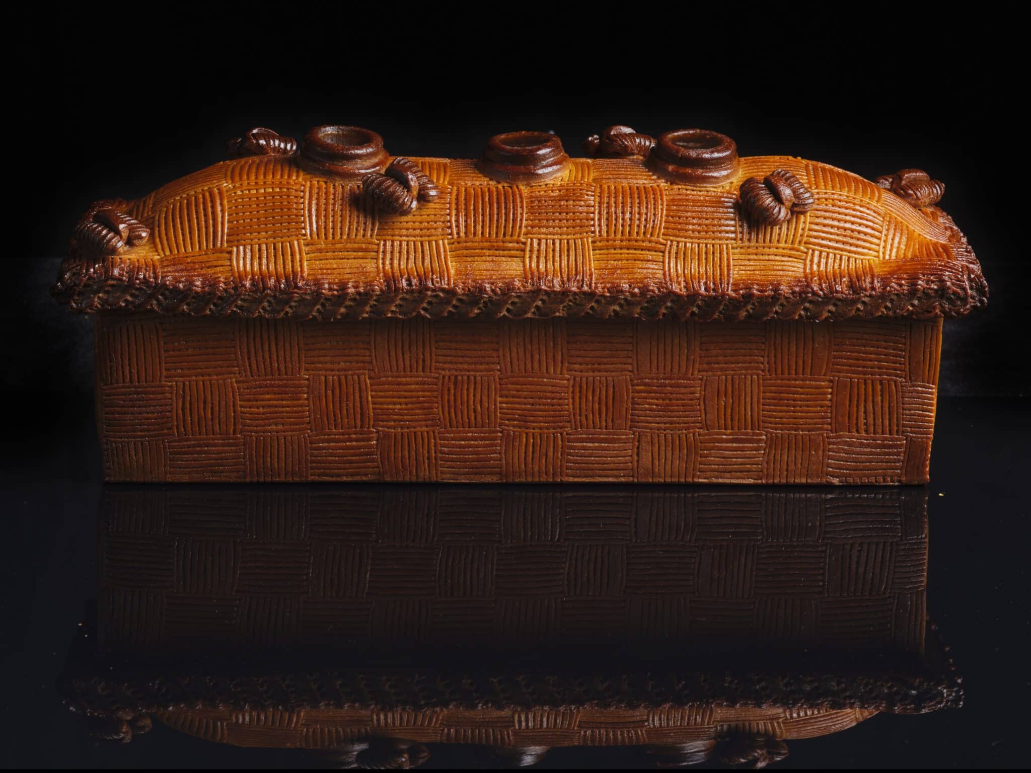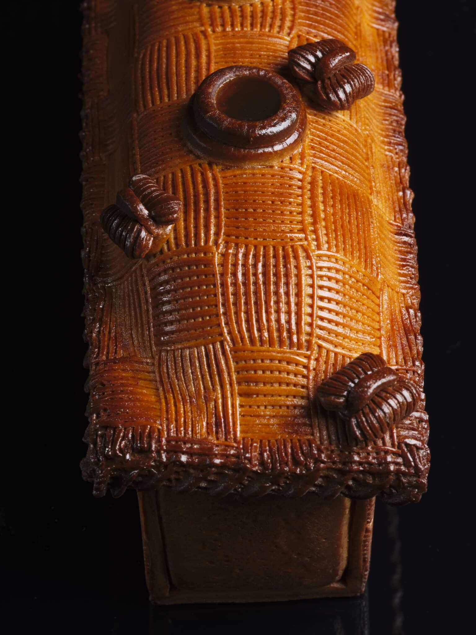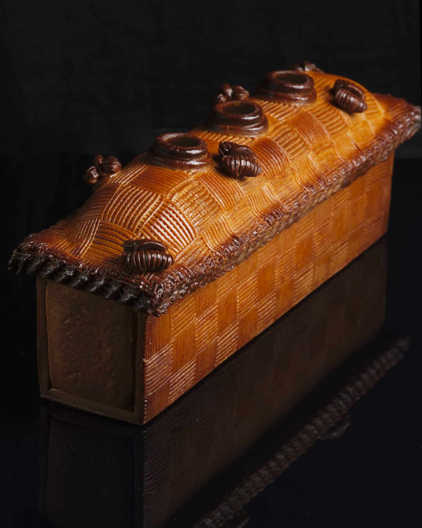 Une esthétique audacieuse. Le nom fait référence au travail minutieux de la pâte, tressée comme de l’osier. C’est un choix technique risqué : à la cuisson, les tresses peuvent se déformer, se rétracter ou cuire de manière inégale. Thibault a maîtrisé son sujet à la perfection, offrant un visuel à la fois rustique et d’une finesse d’orfèvre.